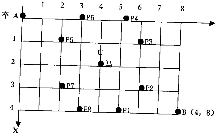 棋盘用坐标表示,A点(0,0)、B点(n,m)(n,m 为不超过20的整数,并由键盘输入),同样马的位置坐标是需要给出的(约定:C<>A,同时C<>B)。现在要求你计算出卒从A点能够到达B点的路径的条数。