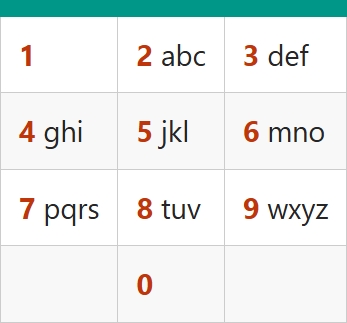 如果要打出一个 'x',就需要按两下 9。第一次按 9 号键会出现 'w',按第二次才会将 'w' 改成 'x'。注意 0 号键的作用是打出一个空格。 给定一些仅有小写字母和空格组成的字符序列,请计算用九宫格输入法总计需要按多少次键。