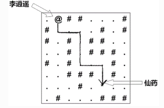 下图显示了一个迷阵的样例及李逍遥找到仙药的路线。